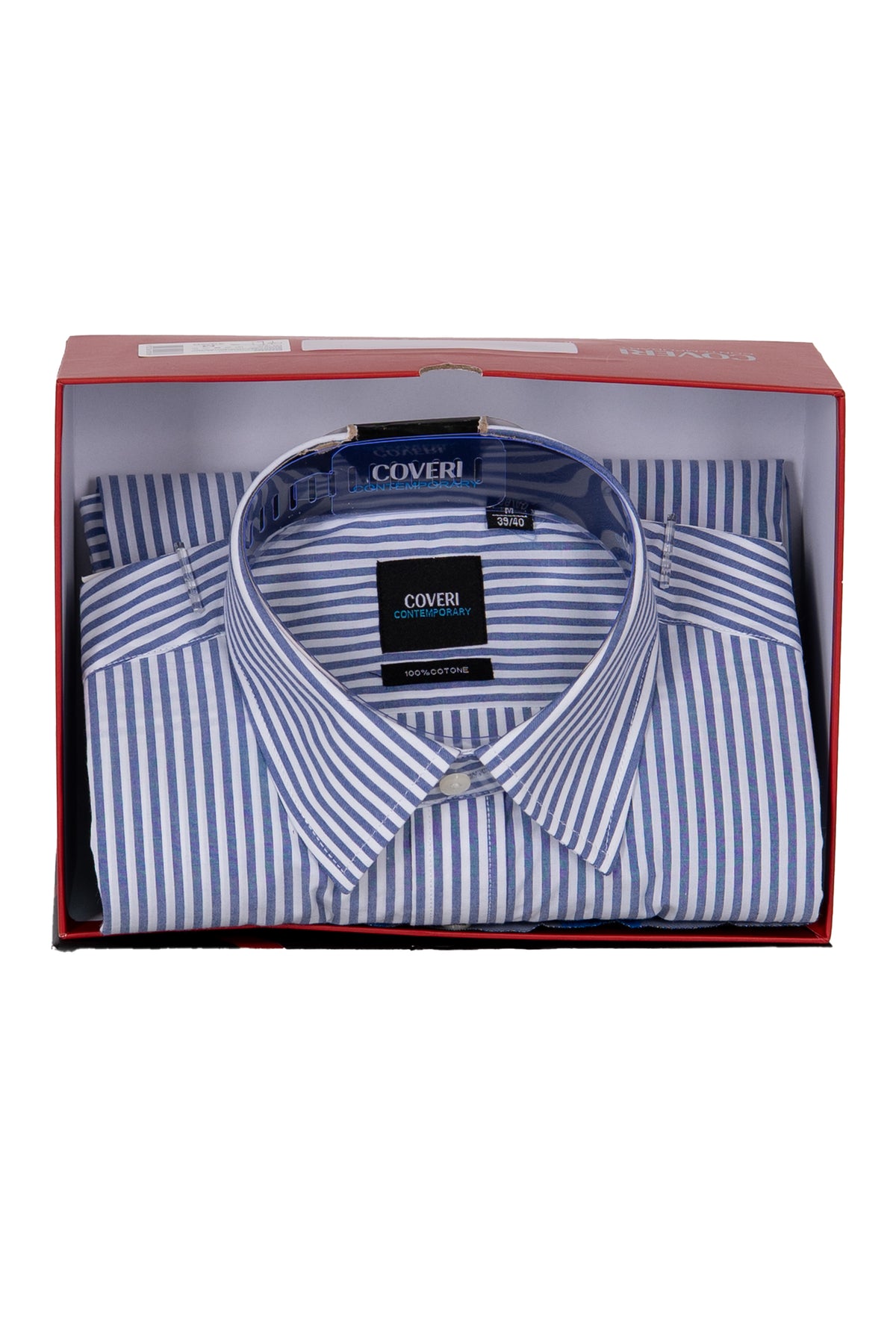 Il motivo a righe verticali slancia la figura e aggiunge un tocco di eleganza discreta, mentre il collo classico garantisce un look curato e versatile, perfetto da abbinare a cravatte o da indossare aperto per un effetto più rilassato. La camicia è presentata in una scatola regalo elegante, ideale per un dono ricercato e di classe.